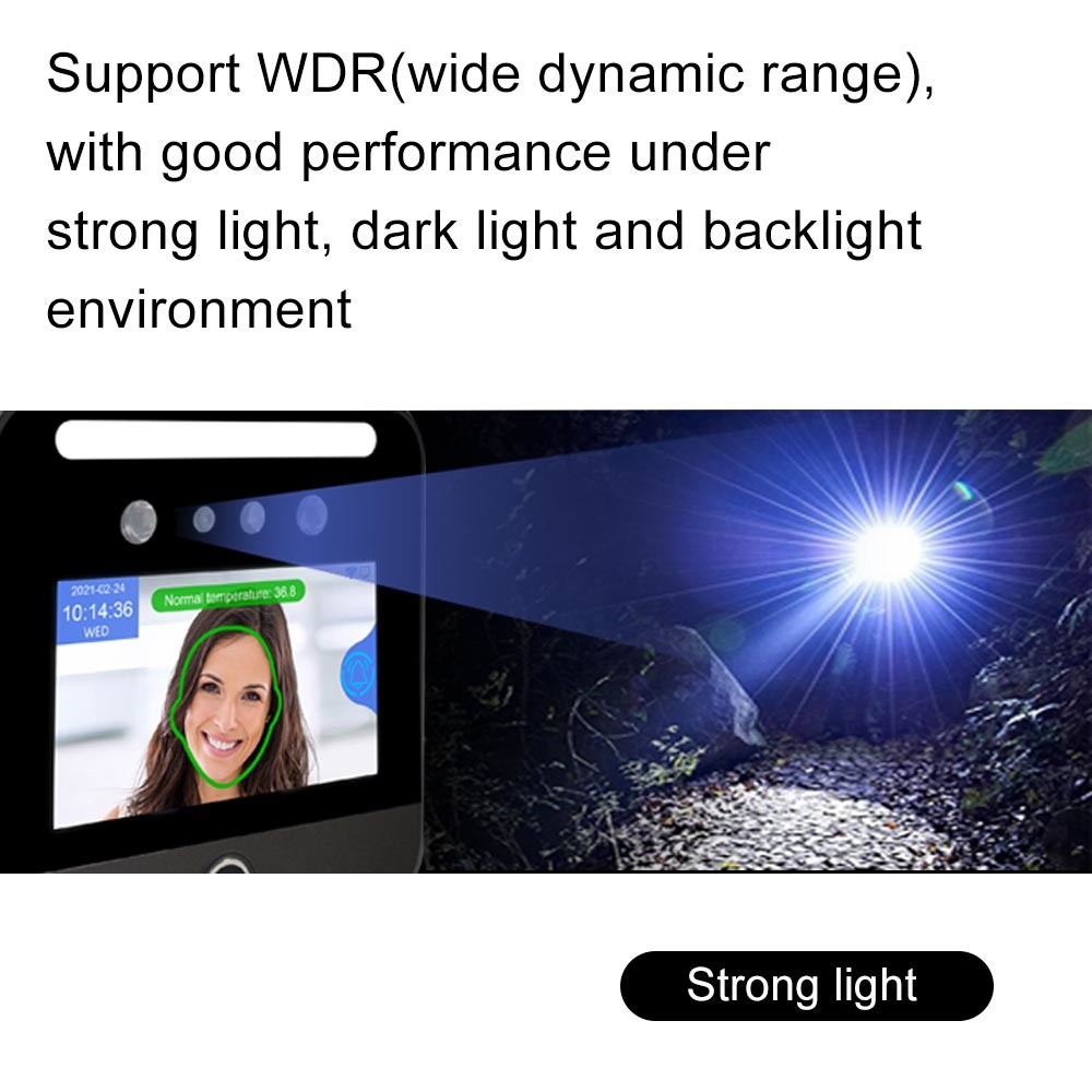 Rozpoznawanie twarzy za pomocą światła widzialnego dzięki 6 elementom rozjaśniającej diody LED.Obsługa WDR z dobrą wydajnością w silnym świetle, ciemnym świetle i podświetleniu.Wiele metod weryfikacji: twarz/odcisk palca/karta/hasło.Wbudowany czytnik ID 125 KHz, opcjonalna karta IC (MF) 13.56 MHz.Profesjonalne oprogramowanie do zarządzania oparte na sieci WWW.Odległość rozpoznawania: 0,5-2,5 metra.