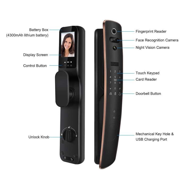 | Rodzaj | Bezpieczeństwo w domu 3D Face Cyfrowy odcisk palca Czarny szklany zamek do drzwi Tuya Smart Lock |