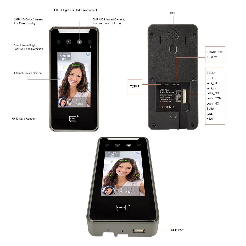 Obsługuje światło wypełniające na podczerwień, białe światło wypełniające automatycznie zapala się, gdy twarz jest uchwycona w ciemnym świetle |